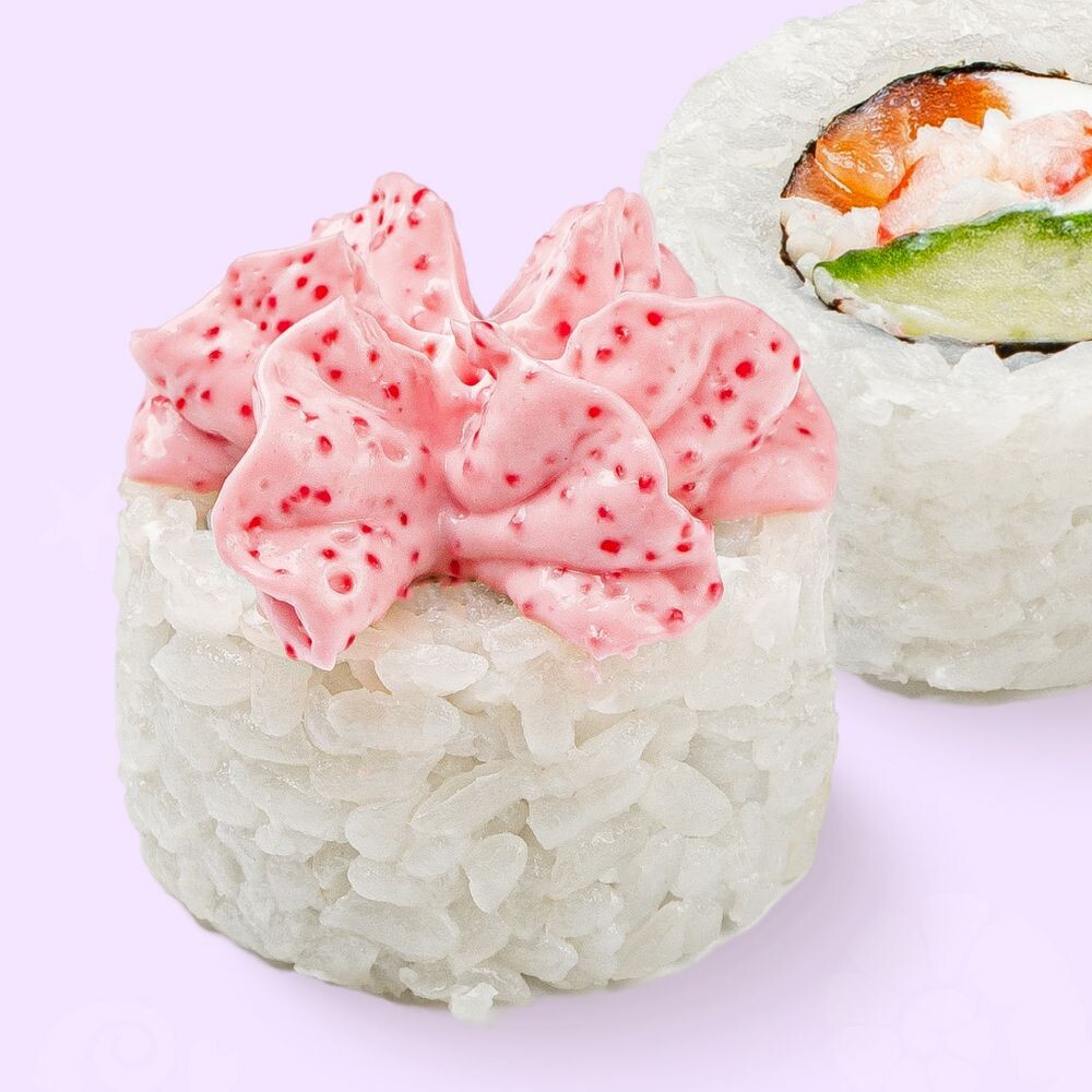 Рис, мицукан, сахар, комбу, соль, нори, огурец, лосось, снежный краб, сыр сливочный, кальмар, тобико, майонез