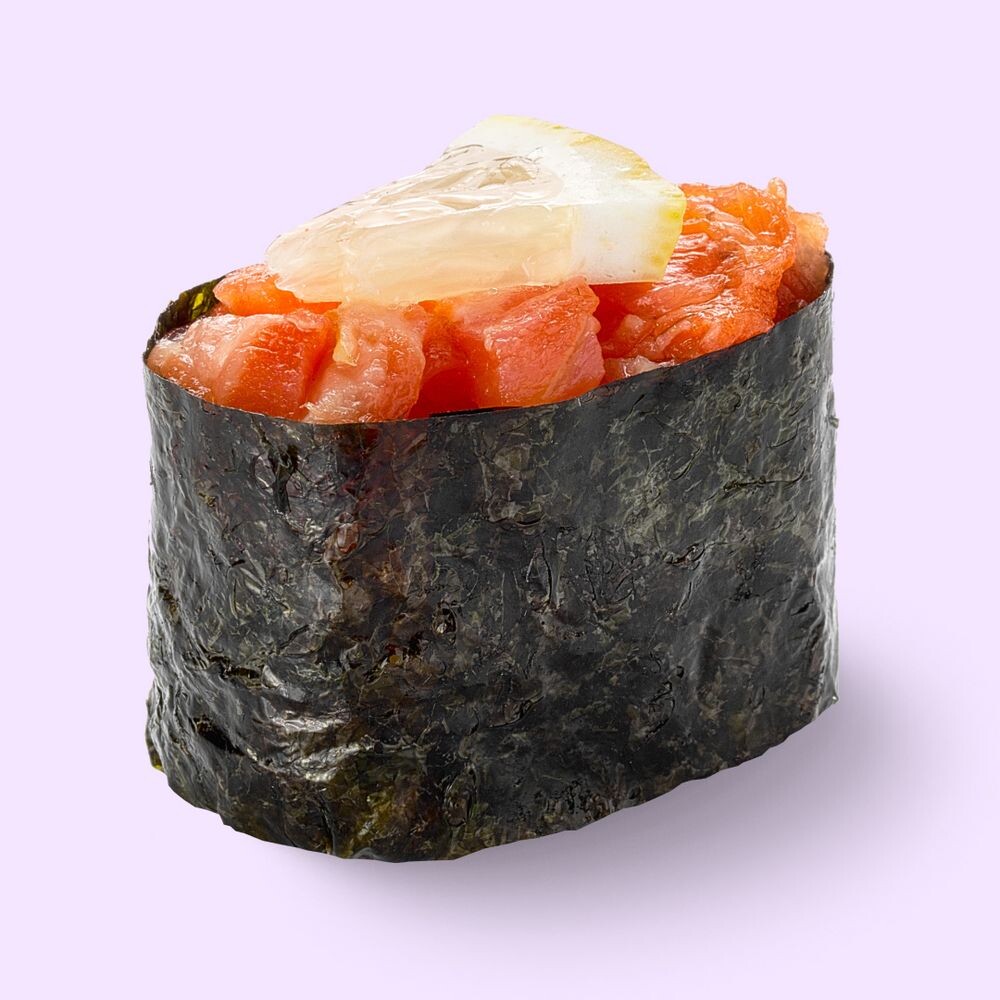 Рис, мицукан, сахар, комбу, соль, нори, лосось холодного копчения