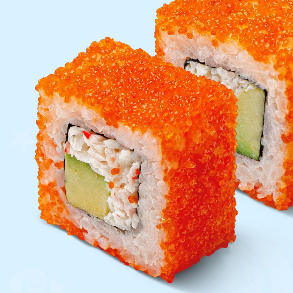 Рис, мицукан, сахар, комбу, соль, нори, майонез, авокадо, снежный краб, тобико
