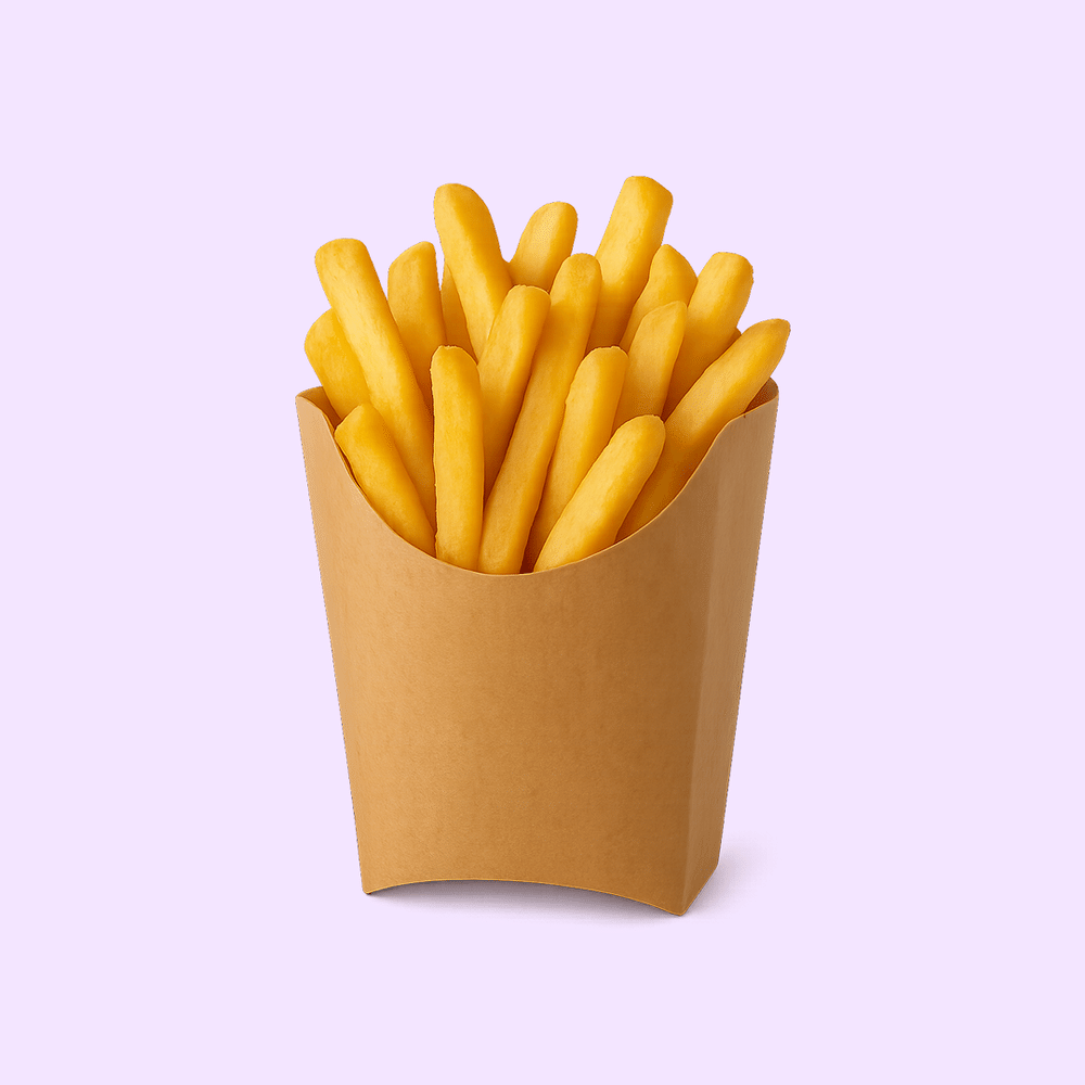 Классический картофель фри — идеально приготовленный, горячий и хрустящий снаружи, мягкий внутри. Просто мечта для любителей перекусов!Состав: Картофель, соль, перец чёрный молотый.