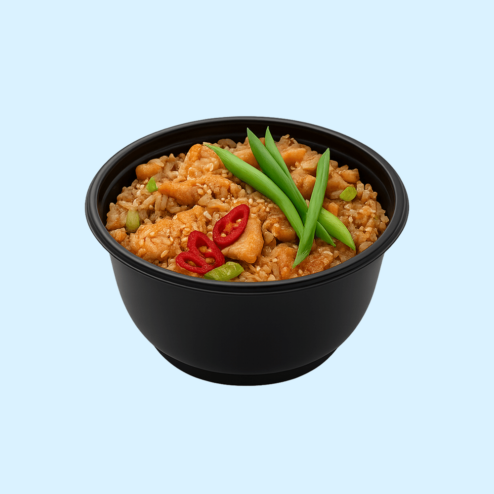 Рис, лосось, соль, крахмал, лук зелёный, соевый соус, чеснок, корень имбиря, кунжут белый, перец чили