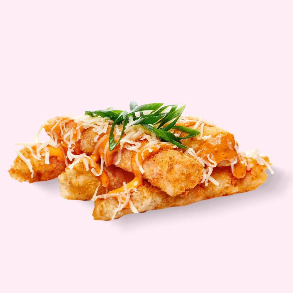 Креветка, яйцо, мука, соль, сухари панировочные , паста кимчи, майонез, гауда, лук зелёный